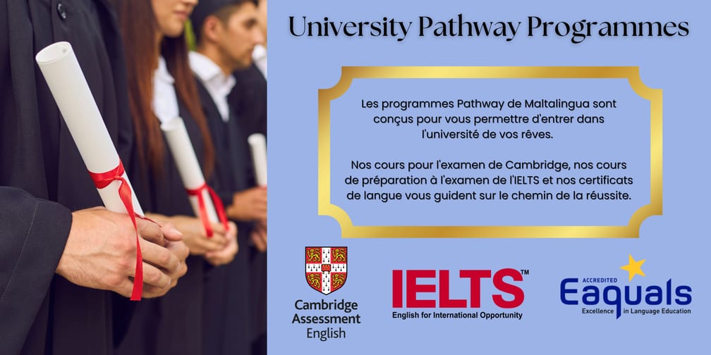Maltalingua propose une gamme de cours d'anglais général, vous permettant d'obtenir un certificat officiel attestant de votre niveau. Nos cours de lat des niveaux A1 à C1, ce qui signifie que vous pouvez obtenir un certificat du niveau débutant au niveau avancé.