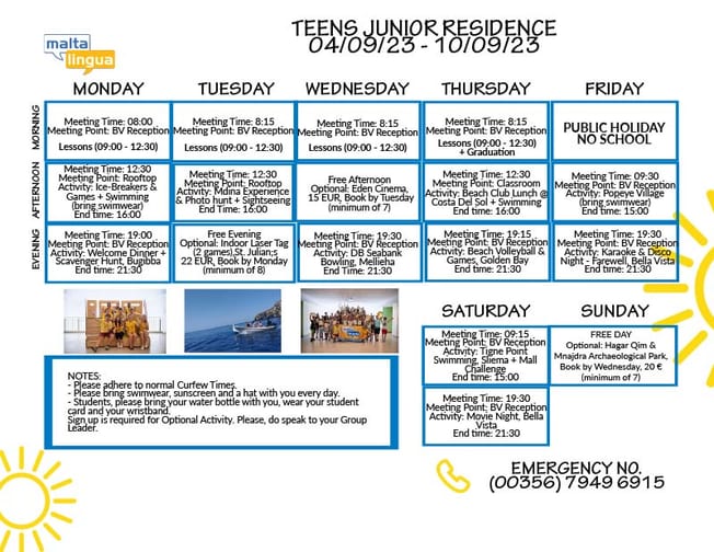 Entdecken Sie Ihr Program de activități unten! Program de varăSăptămâna 15 (4. September 2023 - 10. September 2023)Junior-Reședință - Adolescenți Săptămâna 15 (4. September 2023 - 10. September 2023)Familienprogramm - Adolescenți