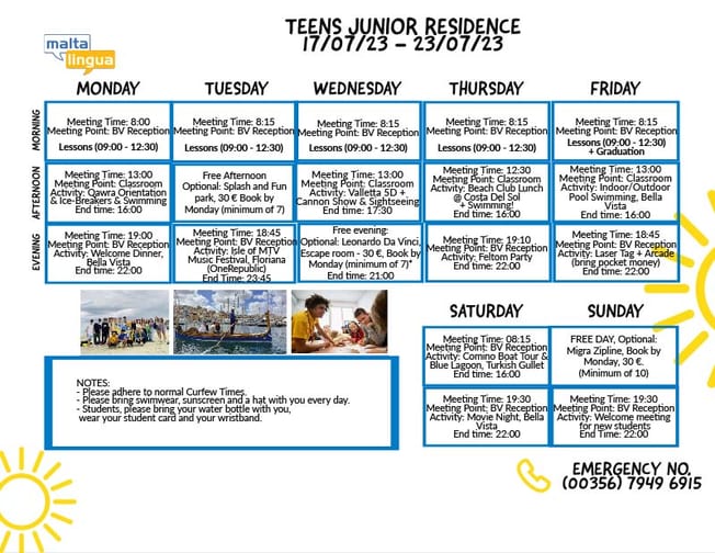 Entdecken Sie Ihr Program de activități unten!Program de varăSăptămâna 8 (17. Juli 2023 - 23. Juli 2023)Junior-Reședință - Adolescenți Săptămâna 8 (17. Juli 2023 - 23. Juli 2023)Familienprogramm - Adolescenți