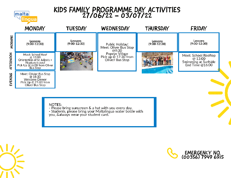 Familienprogramm - Copii (Tagesaktivitäten)