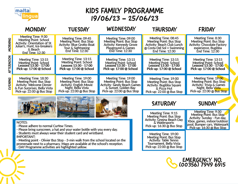 Entdecken Sie Ihr Program de activități unten!Program de varăSăptămâna 4 (19. Juni 2023 - 25. Juni 2023)Junior-Reședință - Copii Săptămâna 4 (19. Juni 2023 - 25. Juni 2023)Familienprogramm - Copii
