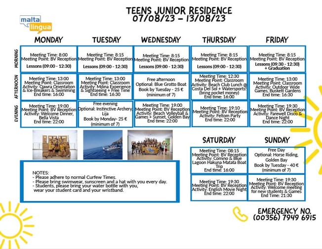 Entdecken Sie Ihr Program de activități unten! Program de varăSăptămâna 11 (7. August 2023 - 13. August 2023)Junior-Reședință - Adolescenți Săptămâna 11 (7. August 2023 - 13. August 2023)Familienprogramm - Adolescenți
